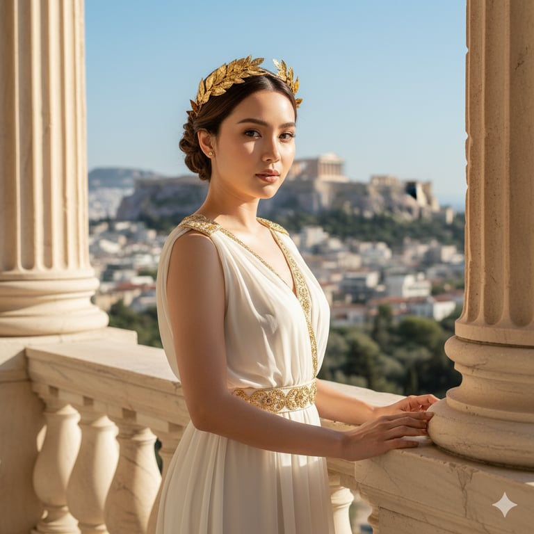 เปลี่ยนคุณเป็นเทพีกรีก! แจก AI Prompt สร้างภาพถ่ายบุคคลสุดปังบนระเบียงวิหารกรีกโบราณ