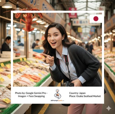 สวัสดีครับเพื่อนๆ ชาว AiPromptSpark ทุกคน! วันนี้ผมมีไอเดียสุดเจ๋งที่จะพาเพื่อนๆ วาร์ปไปเช็คอินที่ญี่ปุ่นกันครับ ใครที่อยากมีรูปสวยๆ เท่ๆ ถือกล้องโปรเดินเลือกดูอาหารทะเลสดๆ ที่ตลาดปลาชื่อดังในเมืองโอซาก้า แต่ไม่อยากเสียค่าตั๋วเครื่องบินแพงๆ วันนี้เราจะใช้พลังของ Google Gemini และเทคนิค Face Swapping มาเนรมิตภาพถ่ายสไตล์ Cinematic ที่ดึงเอาใบหน้าของเราไปใส่ในภาพได้อย่างน่าทึ่ง รับรองว่าผลลัพธ์ที่ได้นั้นสมจริงจนแยกไม่ออกเลยล่ะครับ!