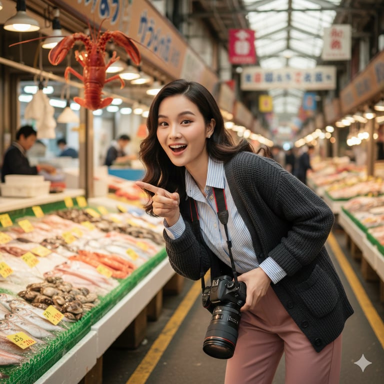 เนียนจนเพื่อนทัก! เปลี่ยนหน้าเราเป็นสาวเที่ยวตลาดปลาโอซาก้า ด้วย AI Prompt สุดล้ำที่ AiPromptSpark