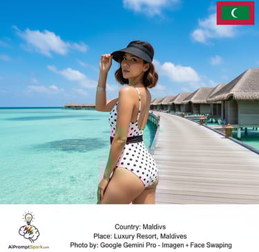 อยากเที่ยวทิพย์แบบเนียนๆ เหมือนวาร์ปไปอยู่มัลดีฟส์จริงๆ ไหม? ลองใช้ AI Prompt สุดเทพจาก AiPromptSpark สร้างรูปสวยๆ ด้วยใบหน้าของเราในชุดว่ายน้ำสุดเก๋ ถ่ายรูปกับทะเลสีเทอร์ควอยซ์และบังกะโลกลางน้ำที่มัลดีฟส์ง่ายๆ ด้วย Google Gemini และเทคนิค Face Swaping ที่จะเปลี่ยนฝันให้เป็นจริง!
