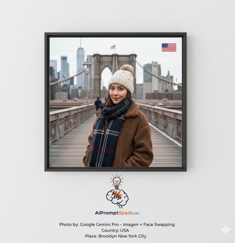 อยากมีรูปสวยๆ เหมือนไปเที่ยวเองที่สะพานบรูคลิน นิวยอร์กไหม? ลองใช้ AI Prompt สุดเทพนี้สิ! สร้างภาพถ่ายสไตล์ไลฟ์สไตล์ท่องเที่ยวที่สมจริงสุดๆ แค่ใช้ใบหน้าของคุณเป็นแบบ พร้อม prompt และวิธีทำอย่างละเอียด ให้คุณได้รูปโปรไฟล์ใหม่เหมือนวาร์ปไปอยู่นิวยอร์กจริงๆ