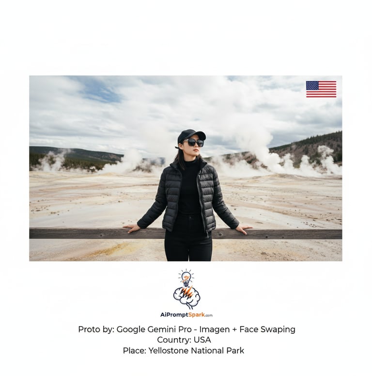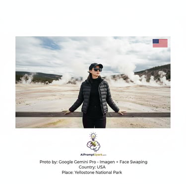 พาตัวเองไปยืนอยู่กลาง อุทยานแห่งชาติเยลโลว์สโตน (Yellowstone National Park) ดินแดนบ่อน้ำพุร้อนและไกเซอร์ที่ยิ่งใหญ่ที่สุดในโลก! ด้วยเทคนิค AI Face Swap Prompt สุดเจ๋ง ทำให้คุณได้รูปโปรไฟล์ท่องเที่ยวสไตล์ Cinematic สุดเท่ ในชุดสีดำชิคๆ ท่ามกลางไอน้ำและพื้นดินสีแร่ธาตุที่ไม่เหมือนใคร บทความนี้จะเผย Prompt ลับ พร้อมวิธีสร้างภาพ AI Portrait คุณภาพสูงแบบ Real-time ที่จะทำให้ทุกคนต้องทัก! ใครอยากได้ภาพเที่ยว อเมริกา (USA) แบบไม่ซ้ำใคร ห้ามพลาด! (110 คำ)