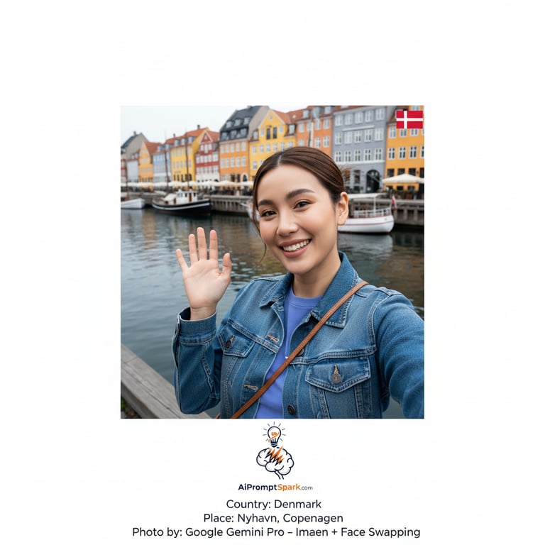 แปลงโฉมเป็นนักเดินทางสุดชิค! สร้างภาพเซลฟี่สุดปังที่ Nyhavn, โคเปนเฮเกน ด้วย AI Prompt